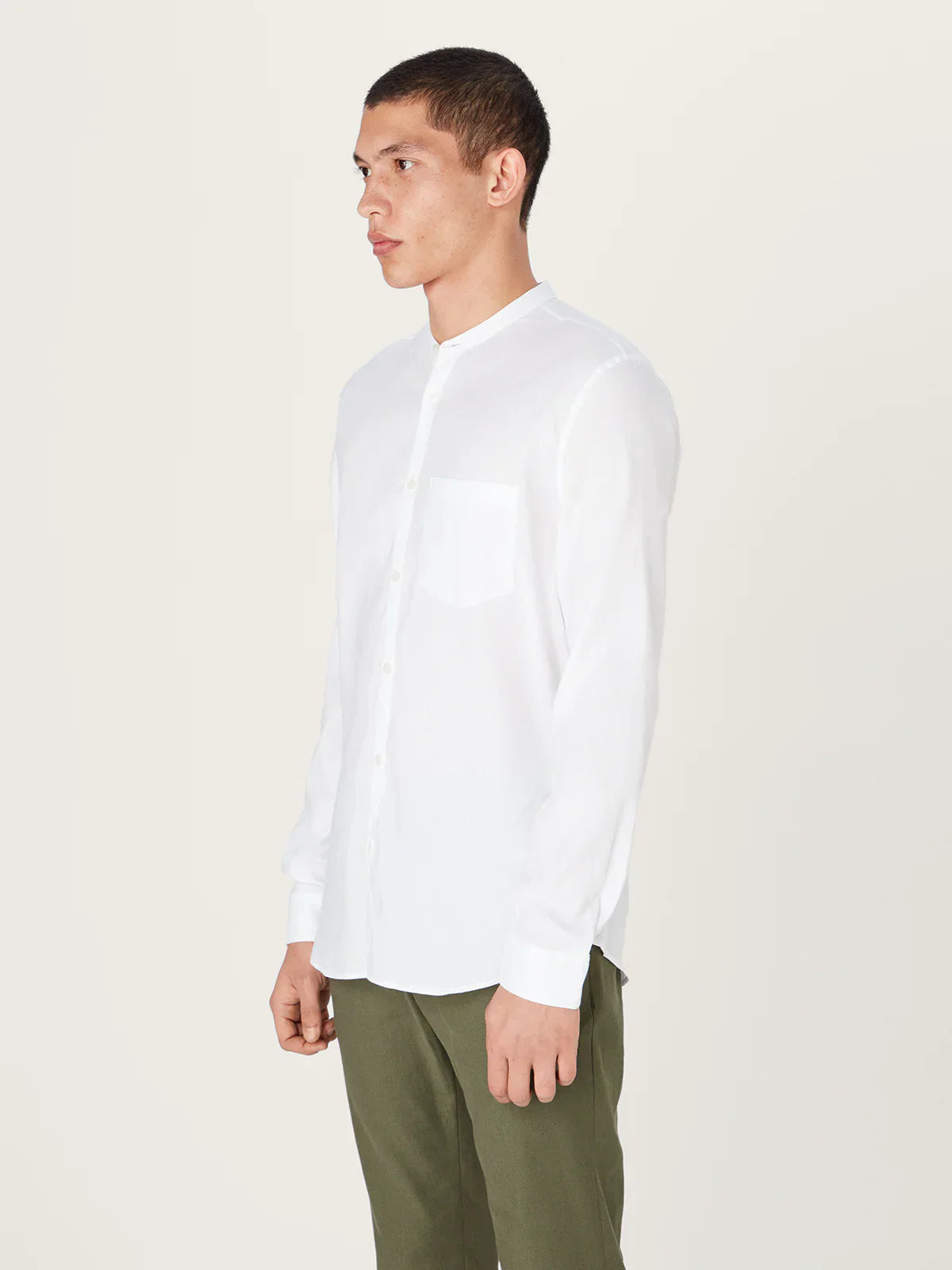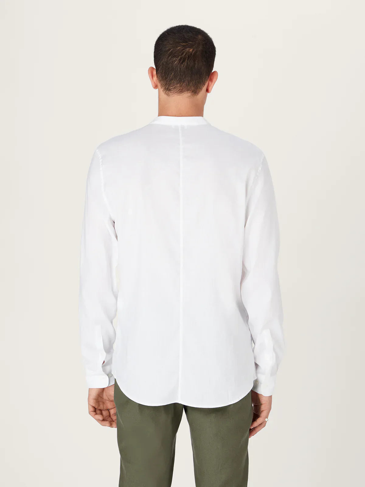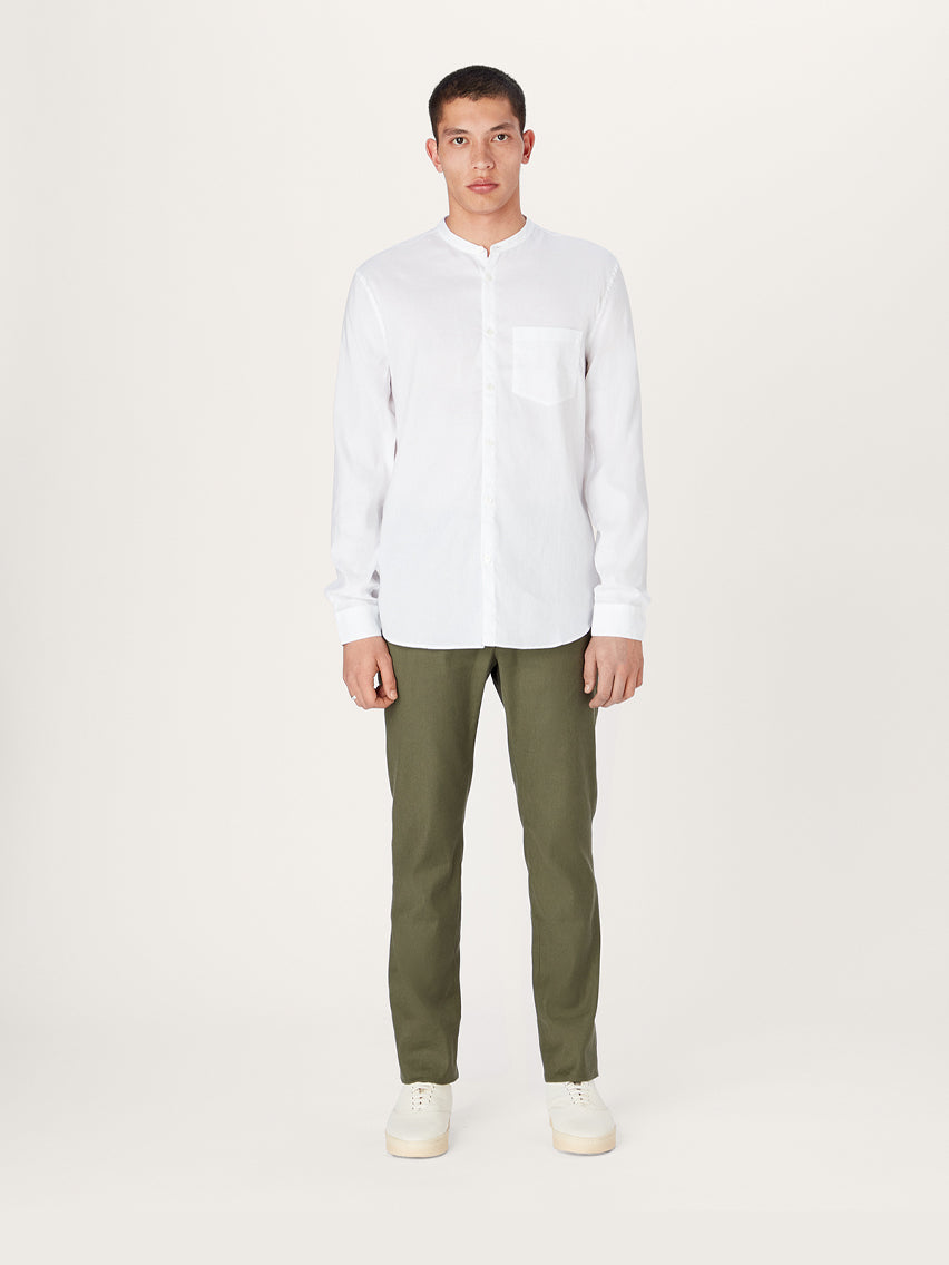 The All Day Shirt Linen Collarless || White | Linen